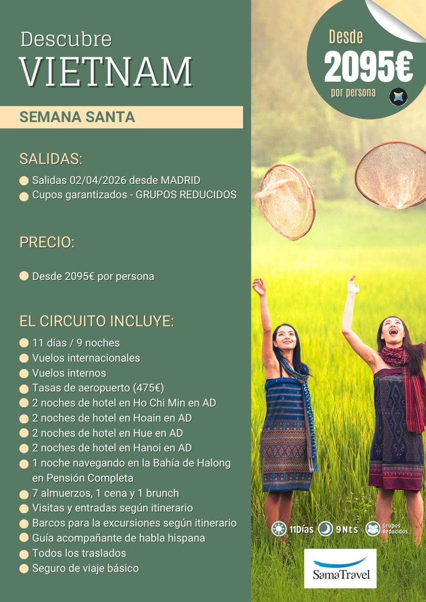 "VIETNAM Semana Santa": Circuito 11 días con visitas (02ABR) [cupos y precios garantizados] **Desde 2.095€**
