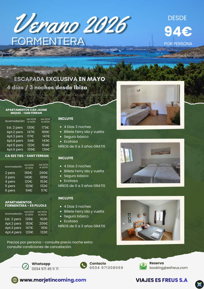 Escapate a Formentera alojamiento + Ferry 4 días/ 3 noches desde 94€